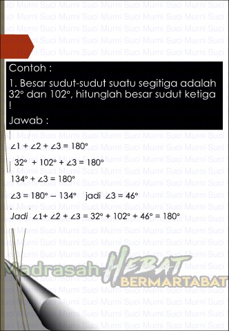 Jadi ∠1+ ∠2 + ∠3 = 32° + 102° + 46° = 180°