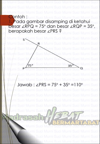Jawab : ∠PRS = 75° + 35° =110°