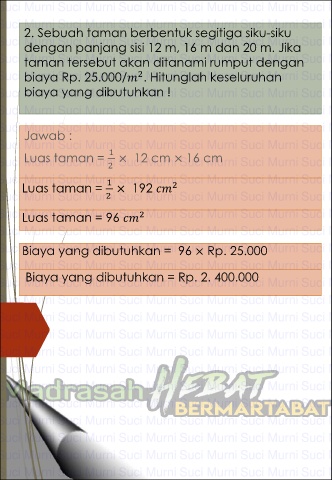 dengan panjang sisi 12 m, 16 m dan 20 m. Jika