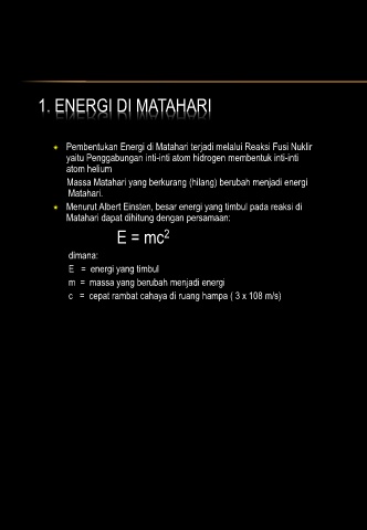 Massa Matahari yang berkurang (hilang) berubah menjadi energi