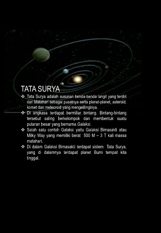 ❖ Di dalam Galaksi Bimasakti terdapat sistem Tata Surya,